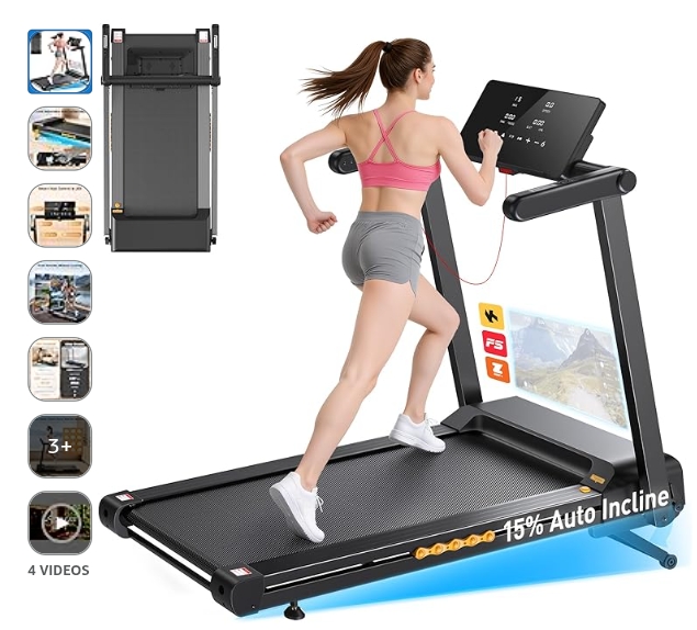 JAGJOG Treadmill for Home, 0-15% Auto Incline Folding Treadmill with 3.5 HP, 14.6″ Large LED Touchscreen, 12 HIIT Modes, 300 lbs Weight Capacity, Smart App & Heart Rate, Fully Assembly