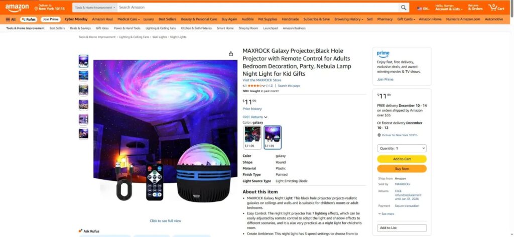 MAXROCK Black Hole Galaxy Projector, Night Light with Remote Control for Kids Bedroom, Sensory Lights for Adults Room Aesthetic, Party