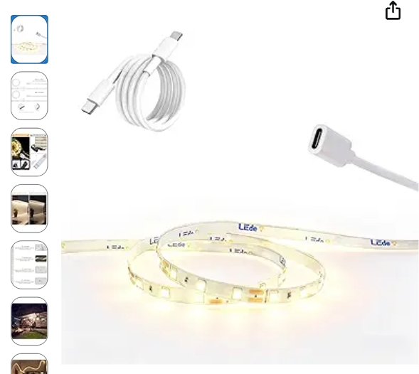 16.4ft 12V LED Strip Lights Neutral White, USB C LED Light Strip Powered by Type-C, Flexible Cuttable LED Tape Light, USB Powered LED Lights for Bedroom, Cabinet, Mirror, 1ft USB-C Cable Included