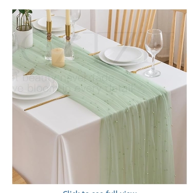 Pearl Sage Green Table Runner Wedding Decor:Pearl Chiffon Table Runner Embellished Sheer Tablecloth Rustic Tulle Table Runners for Engagement Arch Dessert Table Decorations 150x300cm(59x118inch)