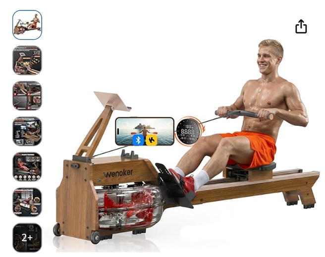 WENOKER Water Rowing Machines for Home Use, Water-Magnetic Dual Resistance Rower Machine with Smart Electronic Knob,Wooden Row Machine with Bluetooth App Compatible for Home Gym Exercise 400 LBS