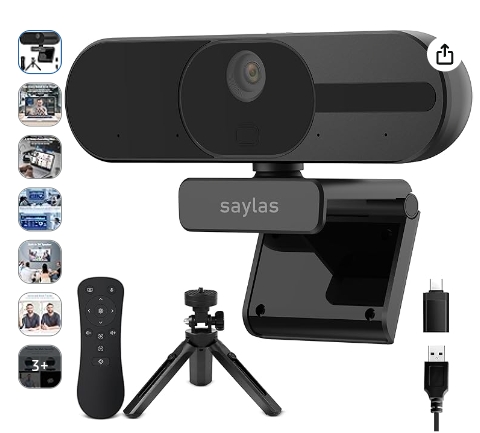 saylas 4K Webcam with Microphone and Speaker, 120° FOV Wide Angle Web cam with Remote, Noise-Cancelling Mics, Auto Focus, Privacy Cover, Plug & Play Web Camera for Computer, USB Webcam for Pc, Laptop